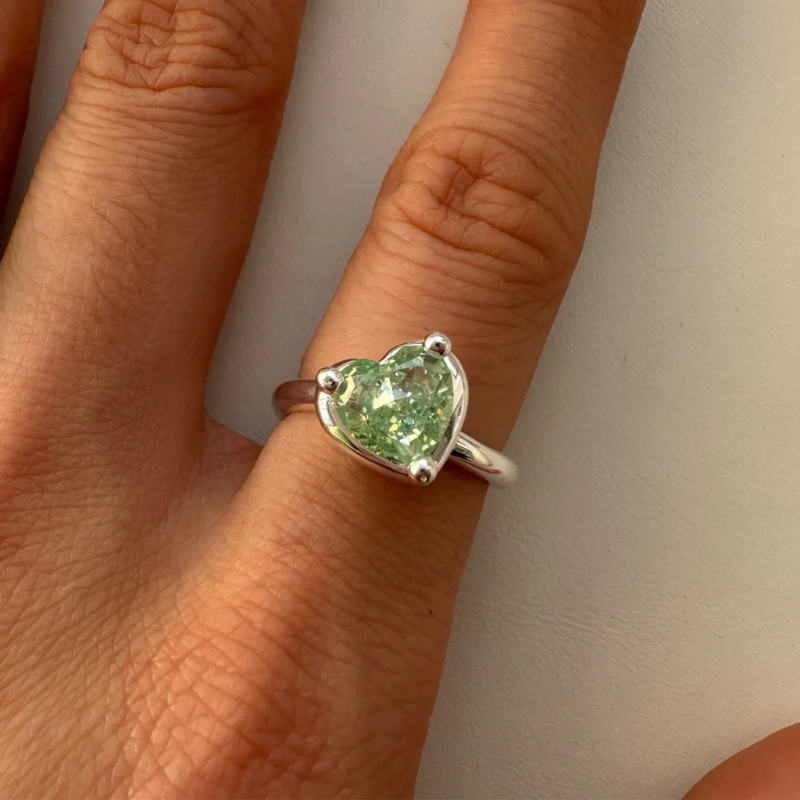 Blue and green stones feature a romantic heart-shaped cut