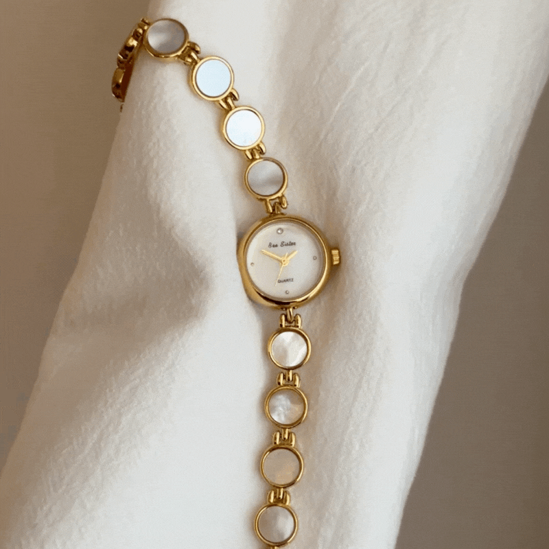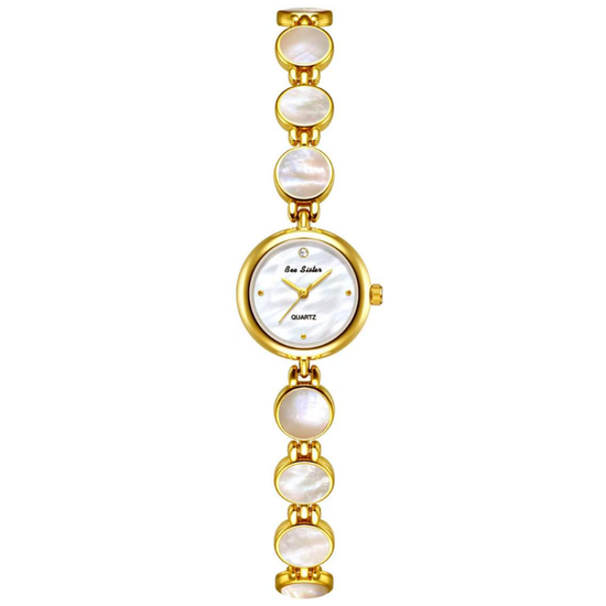 Elegant Gold-Tone Watch with White Mother-of-Pearl Dial & Alloy Bracelet