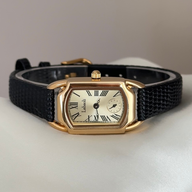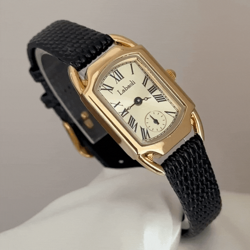 Featuring a bold gold rectangle dial and polished bezel paired with a contrasting black genuine leather strap, this watch ensures all-day comfort. Powered by a reliable quartz movement, its clean architectural design transitions effortlessly from business meetings to refined evening engagements.