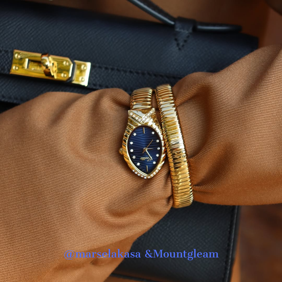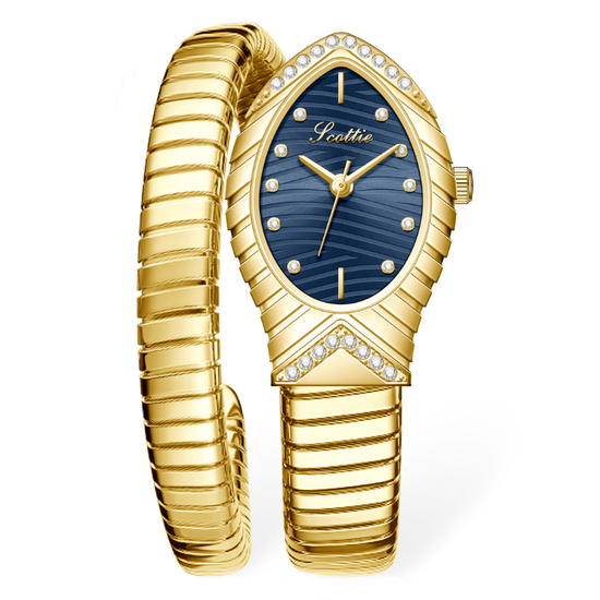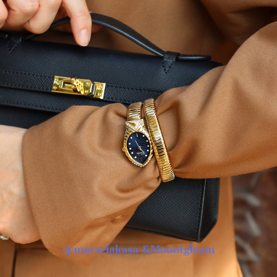 Fashion Stainless Steel Serpenti Women’s Watch – Flexible Bracelet, Gold Case with Blue Dial