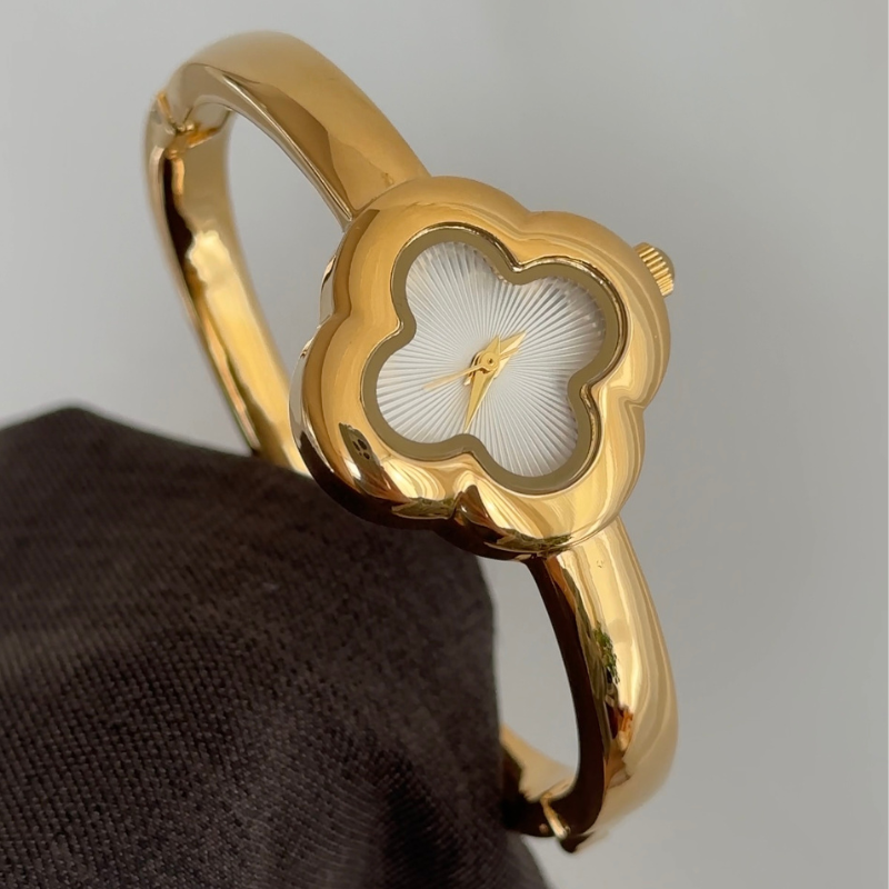 Feminine Elegance: White Clover-Shaped Dial with Gold Clover Bezel & Gold-Tone Bracelet