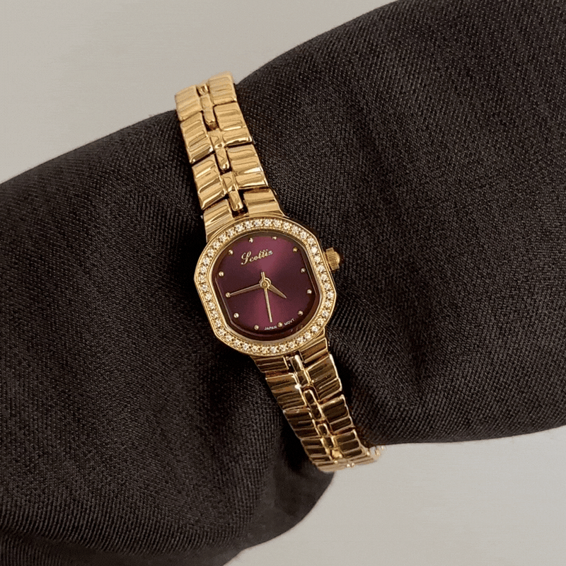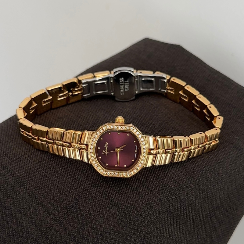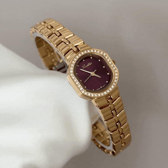 Embodies passionate spirit with a vibrant red sunburst dial, diamond-set gold bezel, and sleek gold stainless steel bracelet. Powered by reliable quartz, it is lightweight, scratch-resistant, and water-resistant for daily comfort. A bold fusion of color and brilliance, it transitions effortlessly from day to night—ideal as a cherished gift or personal indulgence.