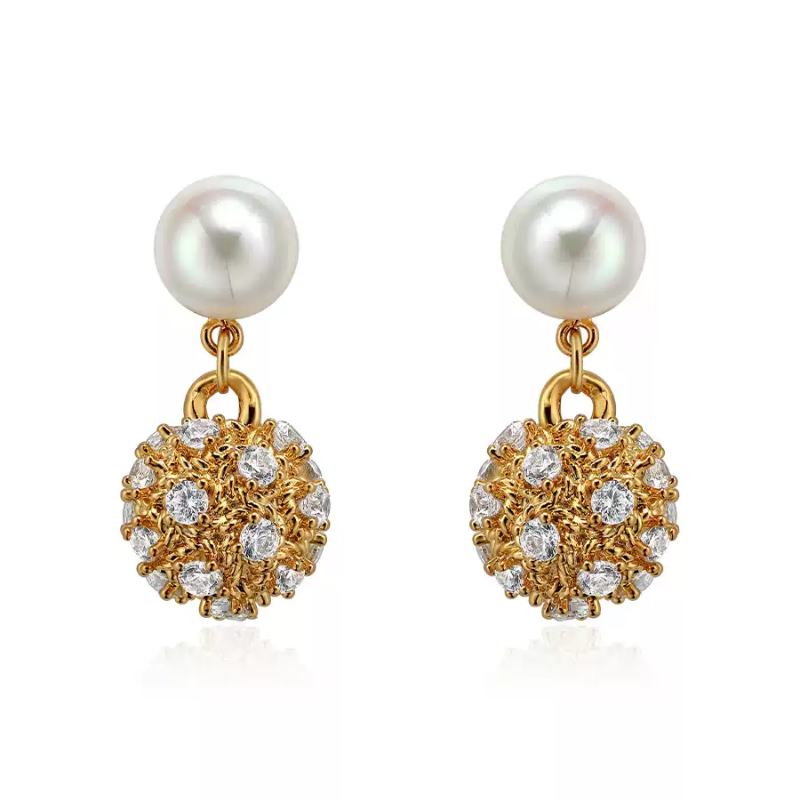 Filigree Cubic Zirconia & Freshwater Pearl Drop Earrings