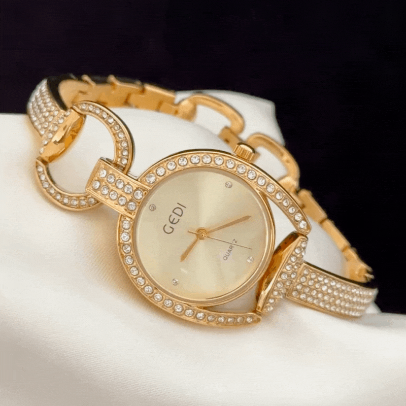 Gold Round Full Diamond Dial with Skeleton Bracelet - Luxury Quartz Watch