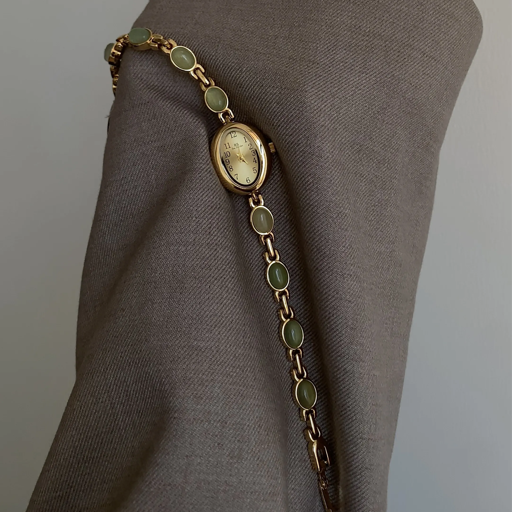 Jade Serenity – Gold Bracelet Watch with Oval Face