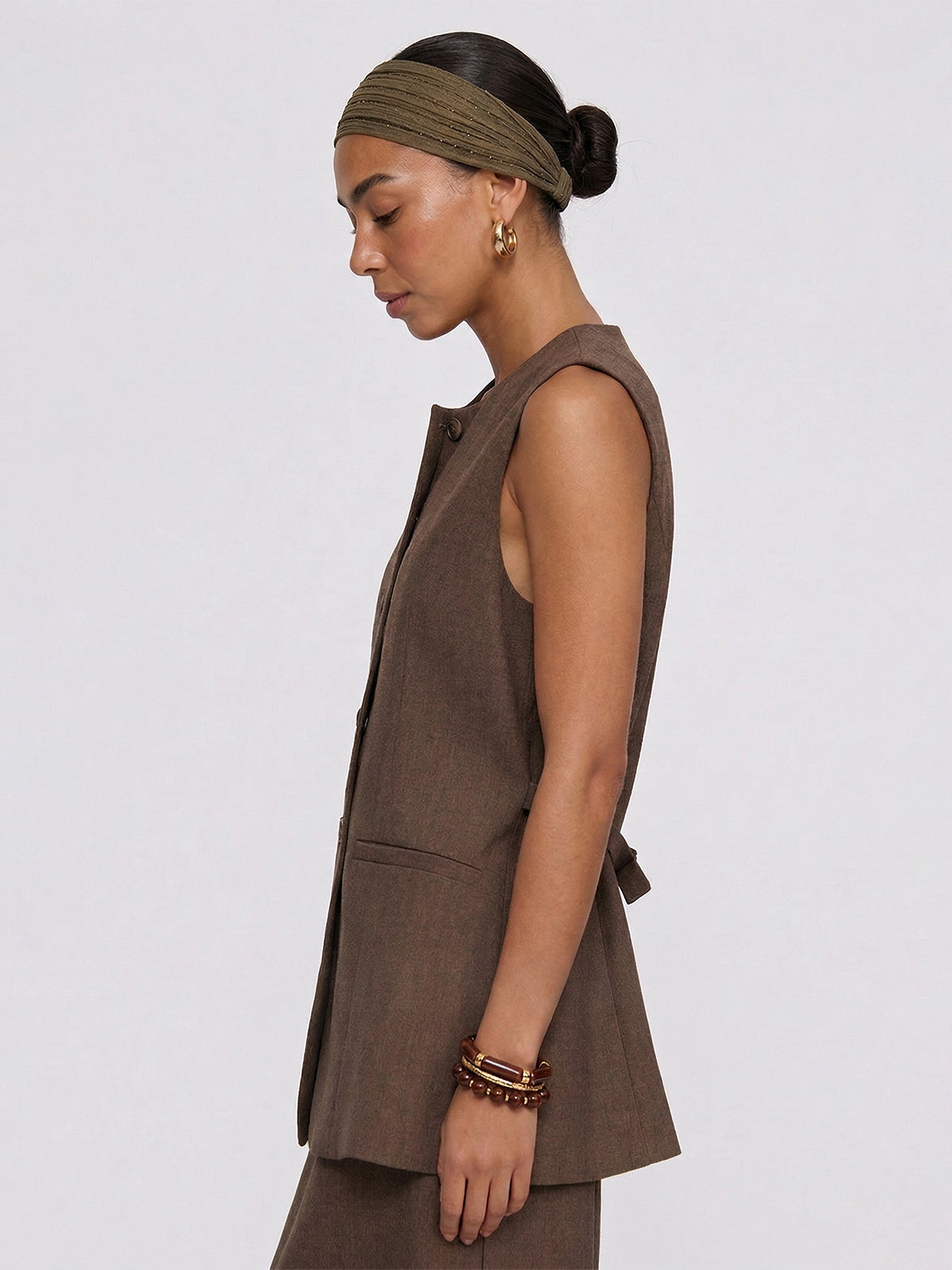 - Tailored sleeveless vest with single-breasted button closure