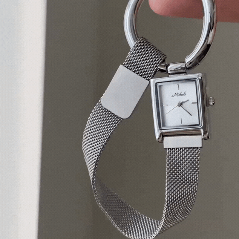 This women’s quartz watch features a sleek square silver dial, paired with a unique magnetic silver ring bracelet that effortlessly hugs the wrist. Its minimalistic design is a celebration of modern simplicity and clean lines, with an intuitive magnetic closure for easy wear and a polished finish.