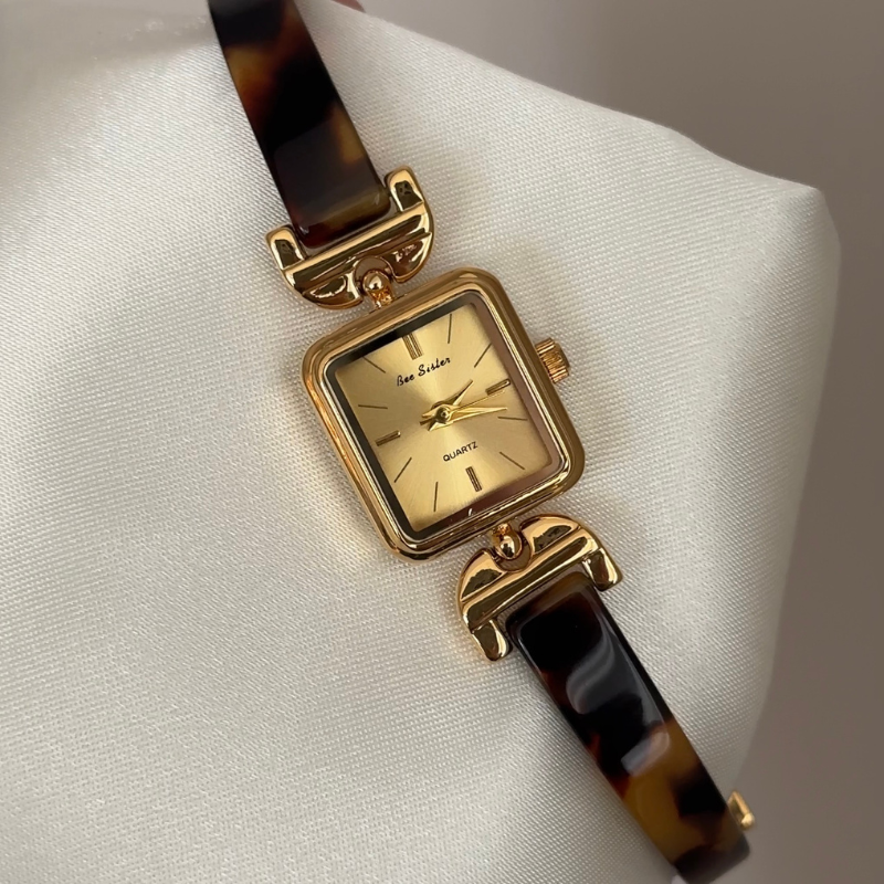 Experience metropolitan elegance with this chic gold rectangular timepiece. The bold geometric dial delivers a confident fashion declaration, enhanced by a sleek gold frame with refined linear aesthetics. A brown alloy wristband introduces modern character through its unique hue and tactile appeal, achieving an ideal synthesis of contemporary sophistication and city chic.