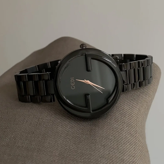 Elevate your style with this minimalist women’s quartz watch featuring a sleek all-black dial. Designed for modern elegance, this timepiece offers a clean, sophisticated look that complements any outfit. Lightweight and versatile, it’s perfect for daily wear, office settings, or evening occasions.