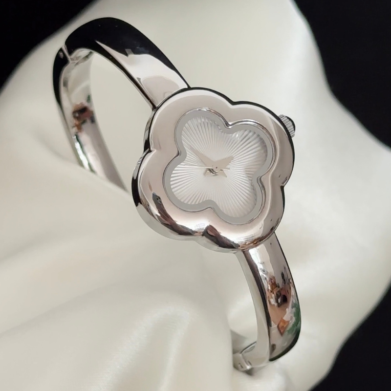 Symbolizing luck, this watch pairs a white clover dial with a matching silver bezel on a polished stainless steel bracelet. Driven by quartz, it offers all-day comfort and transitions seamlessly from day to evening, making it both a modern keepsake and an elegant gift.