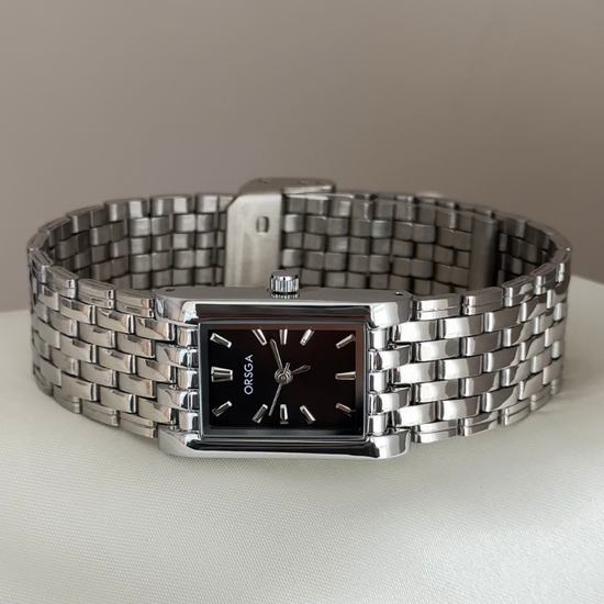 Modern Minimalist: Defined by a Black Rectangular Dial & Monochromatic Silver Accents