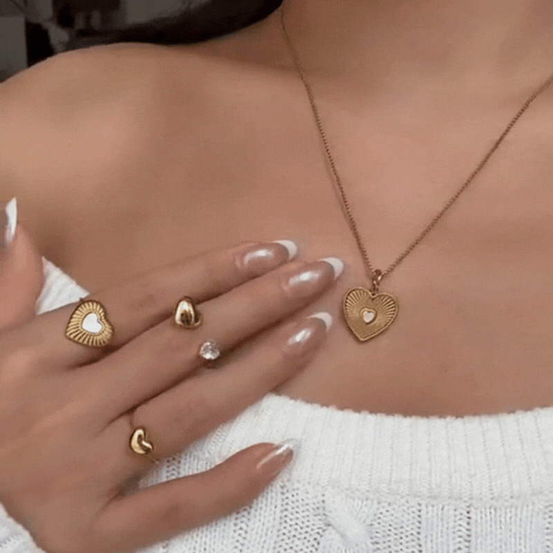 Gold Sunburst Heart Necklace – 18K Gold Plated Titanium Steel Romantic Pendant