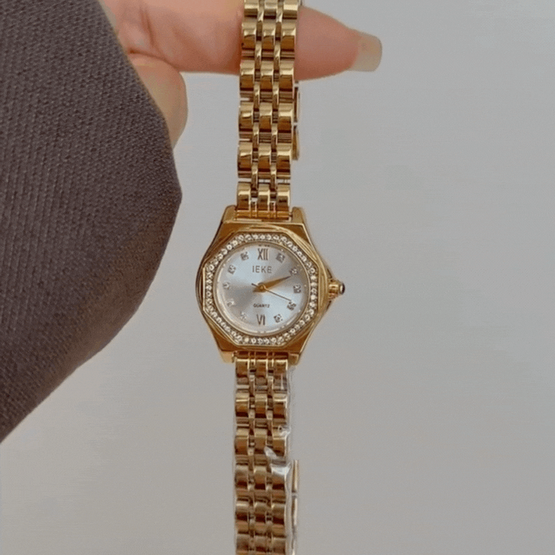 Octagon Gold Bracelet Watch – Crystal-Accented Dial for Women