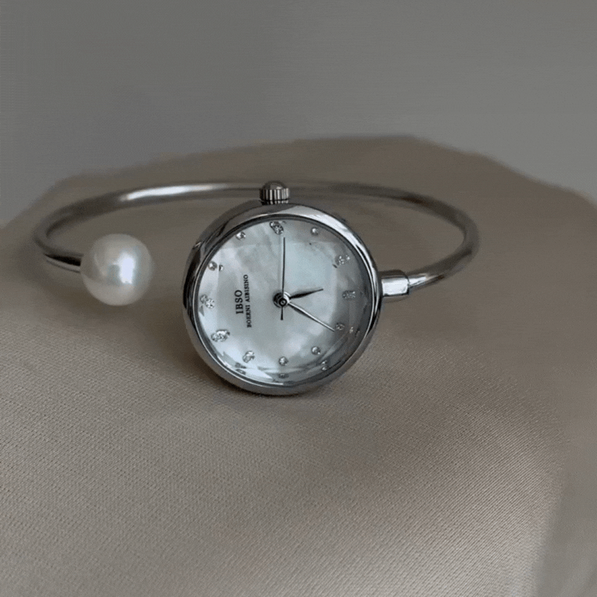 Pearl & Silver Bangle Quartz Watch for Women – Classic White Dial