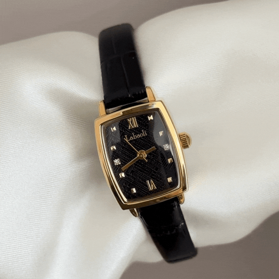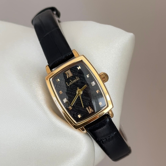 Featuring a bold black rectangular dial and polished gold bezel for striking contrast, this watch is paired with a sleek black genuine leather strap for classic comfort. Powered by a reliable quartz movement, it ensures precise timekeeping. The clean, geometric design offers versatile modern elegance, transitioning seamlessly from professional daytime to refined evening occasions.