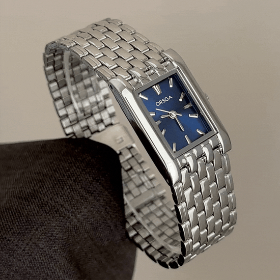 Professional Edge: Navy Rectangular Dial with Silver Bezel & Stainless Steel Bracelet