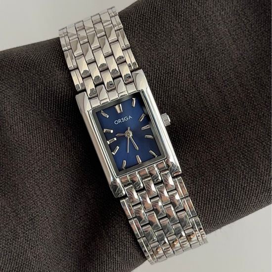 Elevate your style with this crisp navy rectangle dial, polished silver bezel, and matching stainless steel bracelet. Designed for durable, all-day comfort and reliable quartz timekeeping, its versatile aesthetic transitions seamlessly from daytime business to elegant evening occasions.