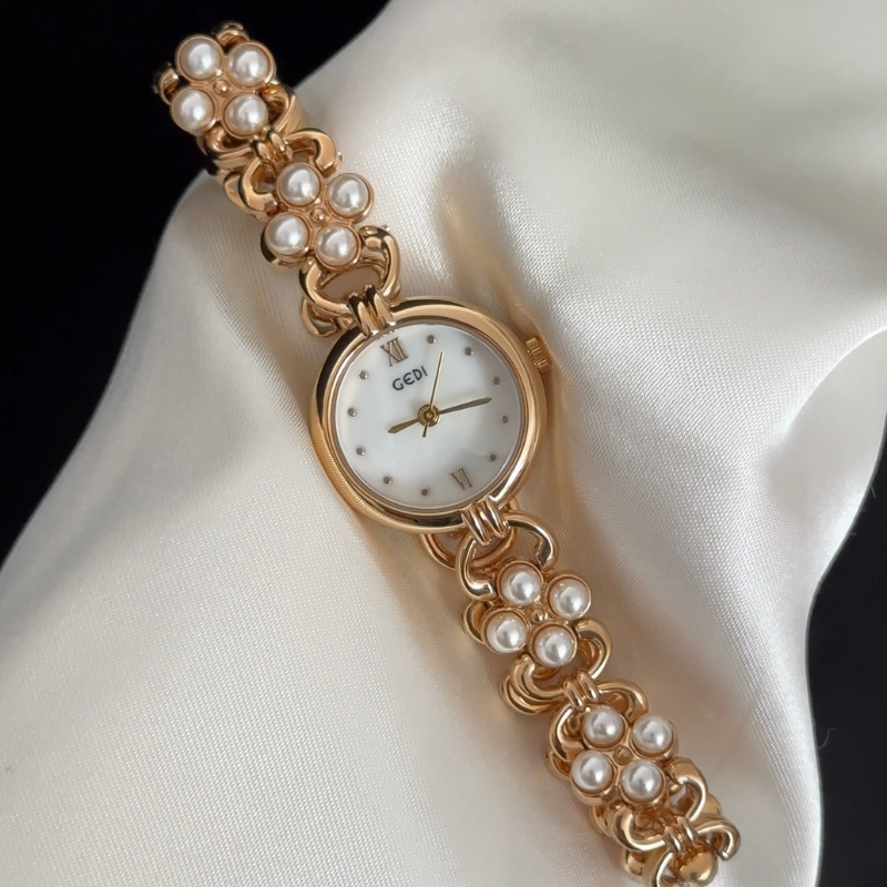 Powered by quartz movement, it ensures accuracy in an elegant silhouette. The blend of mother-of-pearl, gold tones and diamonds creates a versatile accessory transitioning seamlessly from professional to evening settings. Uniting natural beauty with luxurious artistry, it embodies refined elegance for discerning collectors.