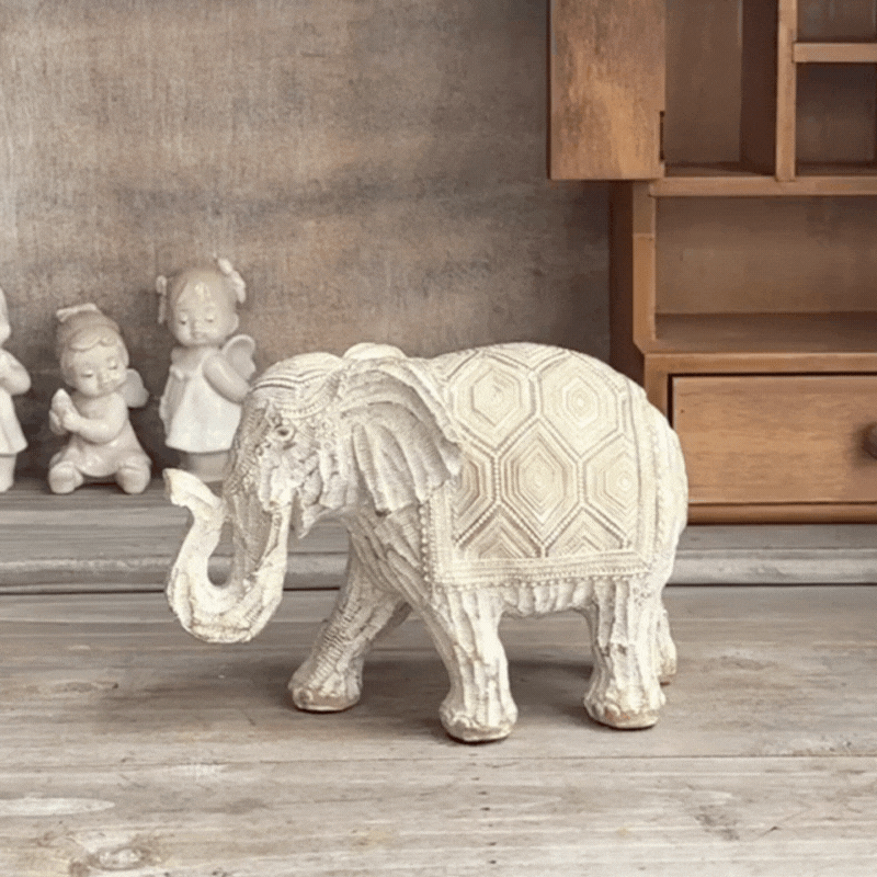 Add a touch of charm and symbolism to your space with this resin elephant figurine, a beautifully detailed tabletop decoration designed to bring warmth and positive energy into any room.