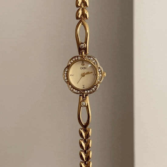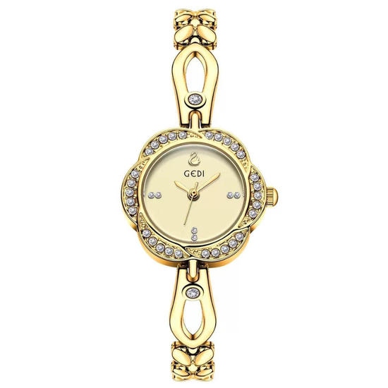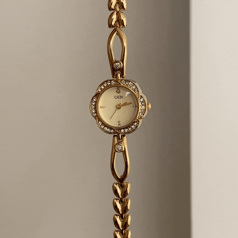 Driven by precise quartz movement, the watch ensures accurate timekeeping within its graceful silhouette. The harmonious combination of warm gold tones and sparkling diamonds creates a versatile accessory that transitions seamlessly from professional daytime settings to romantic evening occasions. Uniting botanical artistry with sophisticated craftsmanship, this piece is ideal for those who appreciate floral-inspired elegance in their timepieces.