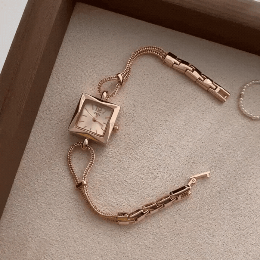Introducing the Rose Gold Radiance Timepiece, a harmonious blend of functionality and elegance. Featuring a sleek square dial, a radiant rose gold chain bracelet, and waterproof construction, this watch is designed to elevate your style while offering everyday practicality. Perfect for any occasion, it embodies timeless sophistication.