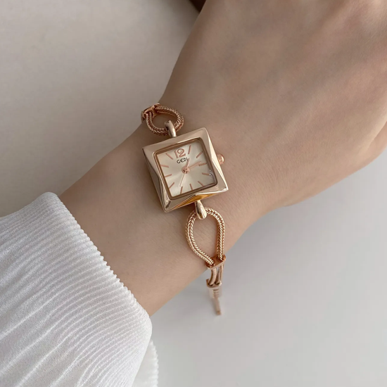 Rose Gold Radiance Timepiece: Square Waterproof Chain Watch