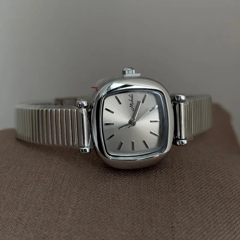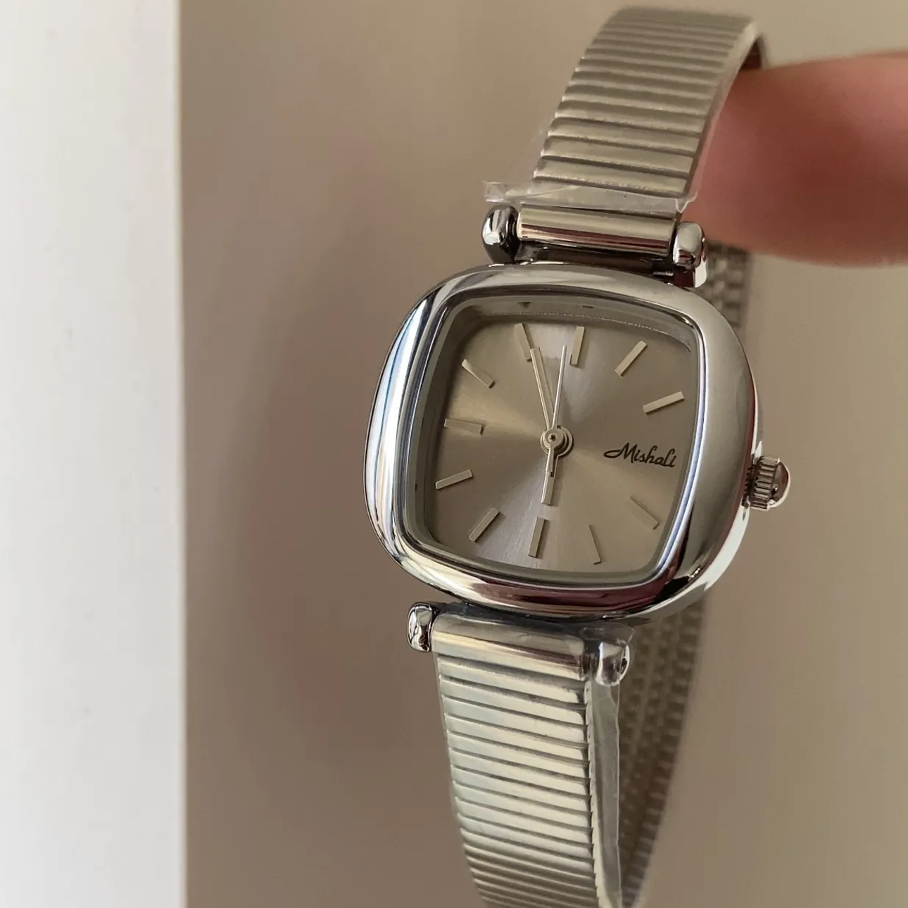 Introducing the Silver Essence Timepiece, where minimalist design meets high-end elegance. This watch features a sleek silver square case, offering a contemporary and refined aesthetic. Its clean, geometric lines and subtle luxury make it a perfect choice for those seeking something unique yet sophisticated. Elevate your look with this timeless piece, perfect for both casual and formal occasions.