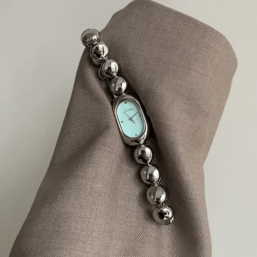 This graceful quartz watch features a sleek oval blue dial paired with a silver beaded bracelet, offering a refined balance of charm and modern elegance. With precise quartz movement and a delicate design, it's the perfect accessory for everyday sophistication.