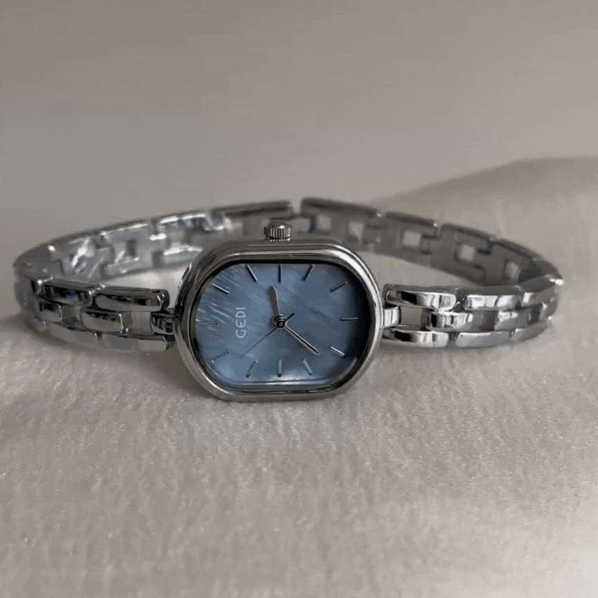 Introducing the Silver Grace Timepiece, a stunning blend of elegance and sophistication. Featuring a sleek silver-tone bracelet and a refined oval case, this timepiece is beautifully complemented by a lustrous mother-of-pearl dial, exuding a soft, iridescent glow. The minimalist design of the small dial adds a touch of timeless elegance, making this watch perfect for both formal occasions and everyday wear. With its delicate charm and impeccable craftsmanship, the Silver Grace Timepiece is a true testament to understated luxury.