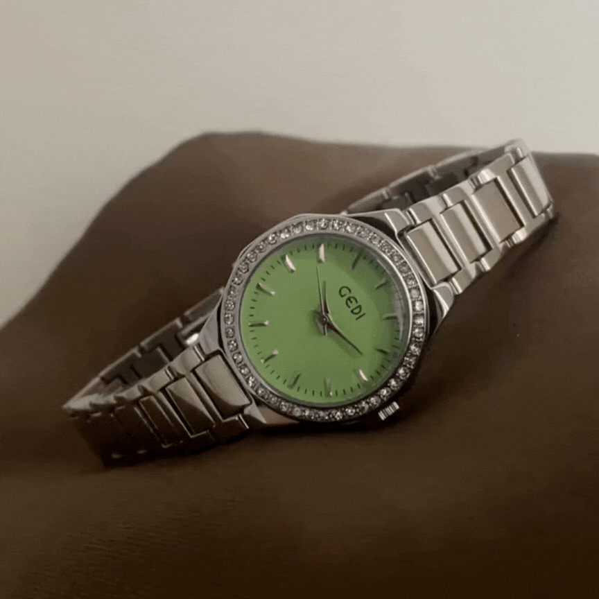 Silver Stainless Steel Green Dial Diamond-Accented Quartz Watch for Lady – Elegant & Stylish