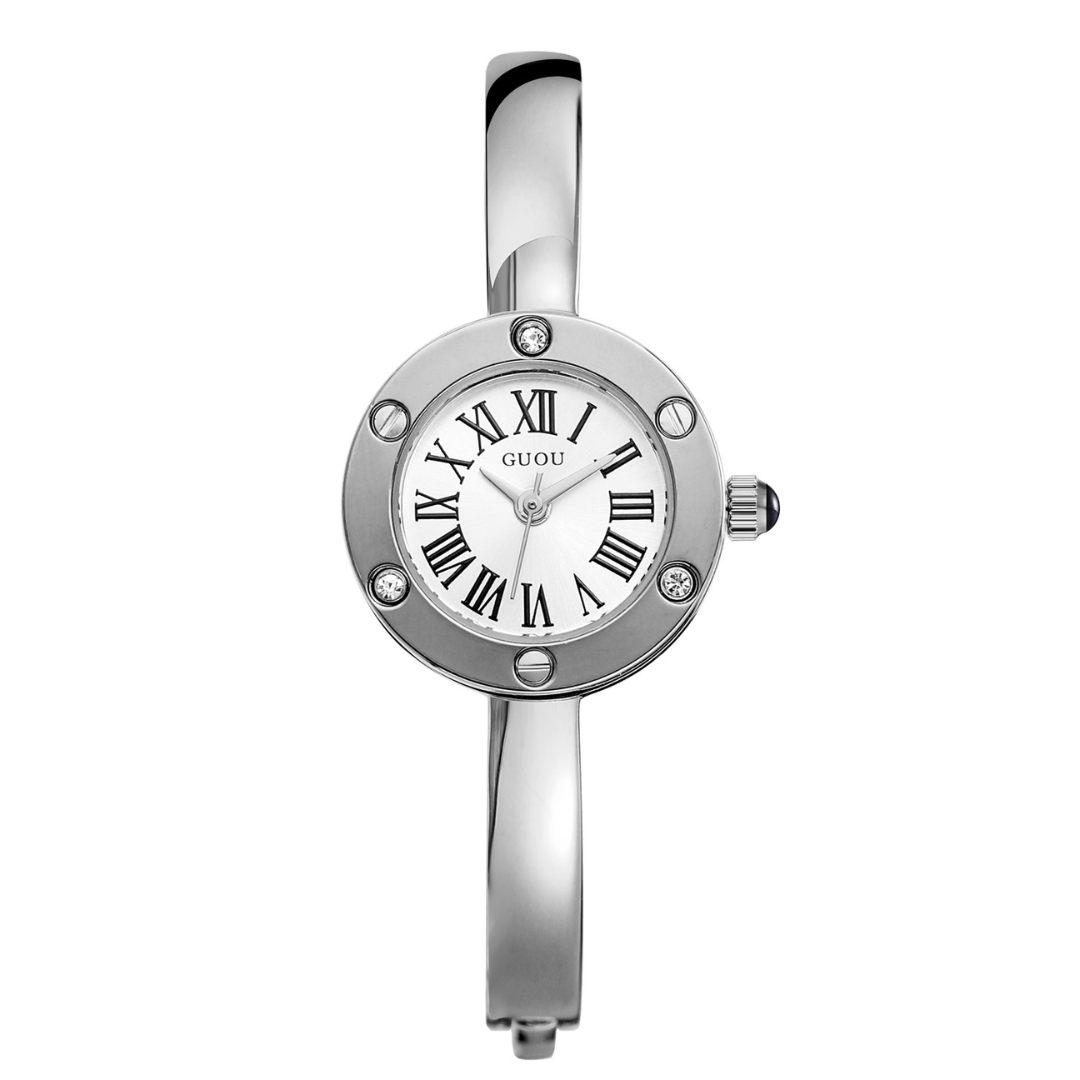 Silver-tone women’s watch with round Roman numeral dial. Quartz movement for reliable timekeeping. Ideal for casual or formal wear.