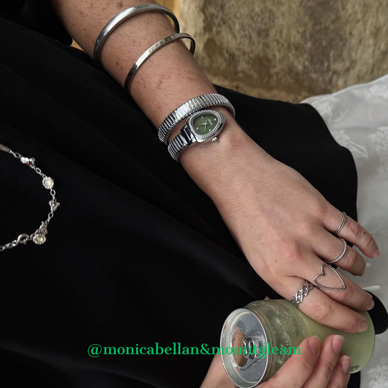 Elegant women’s quartz bangle watch featuring a silver snakehead case, striking green serpent-pattern dial, and wrap-around bracelet design. Combining jewelry-inspired artistry with exotic luxury, this bold timepiece is perfect for women who embrace statement style.