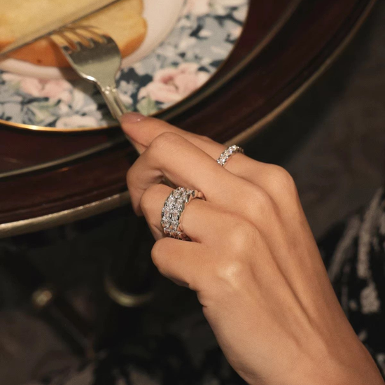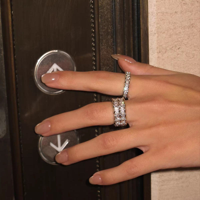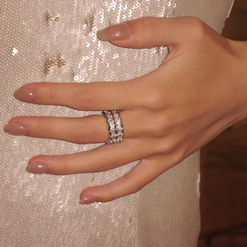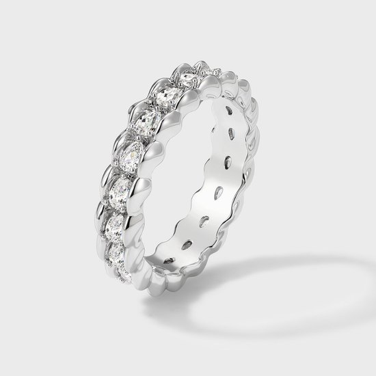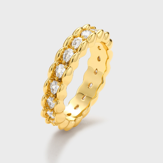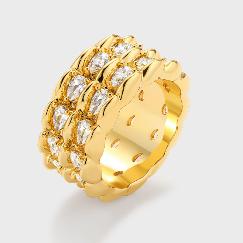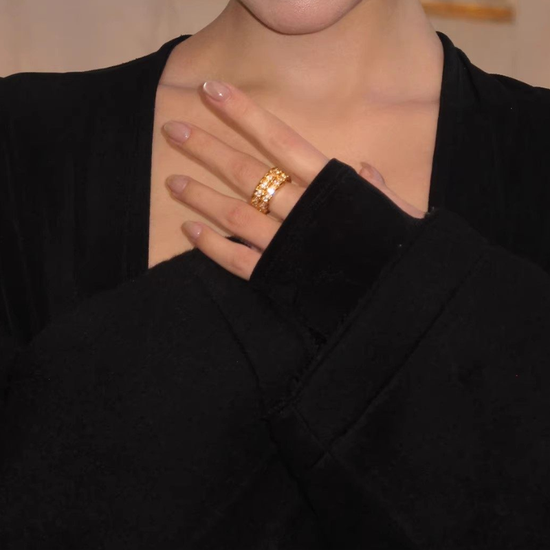 Crafted from gold-plated or platinum-plated brass, this ring is adorned with sparkling cubic zirconia, delivering a refined shine without being overpowering. Perfect for stacking or wearing solo, it adds instant sophistication to both casual and evening outfits.