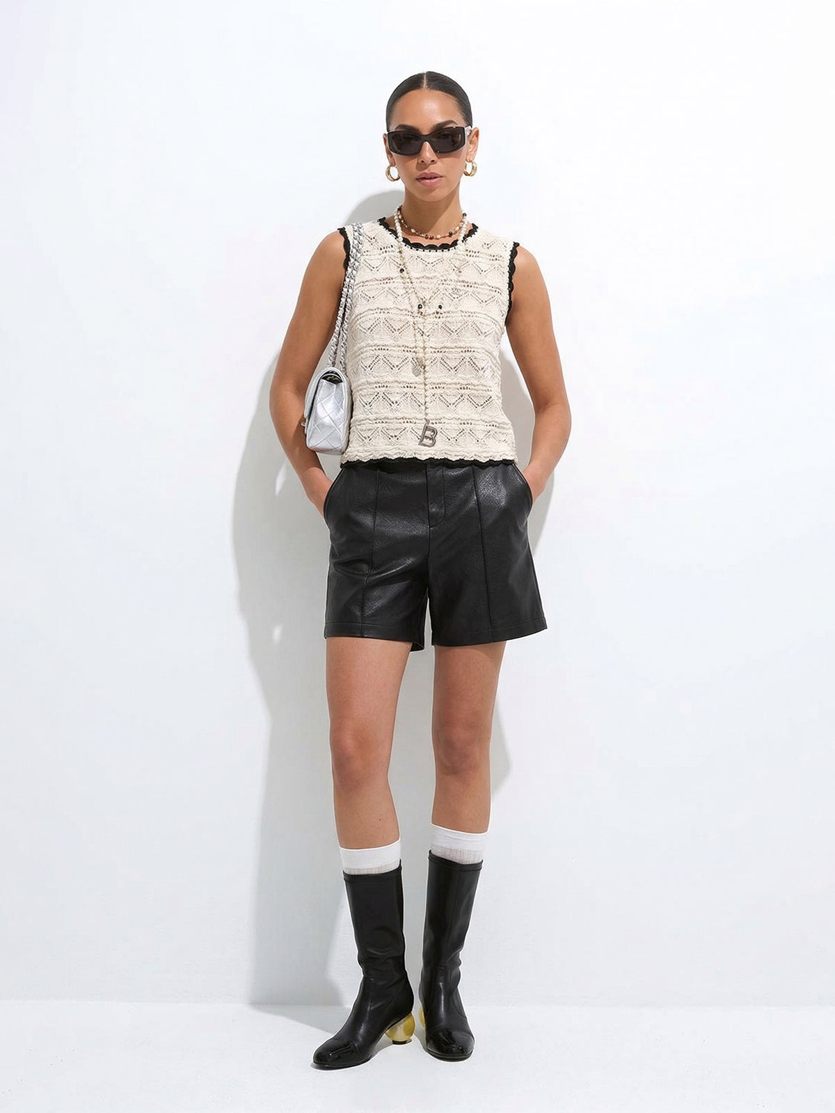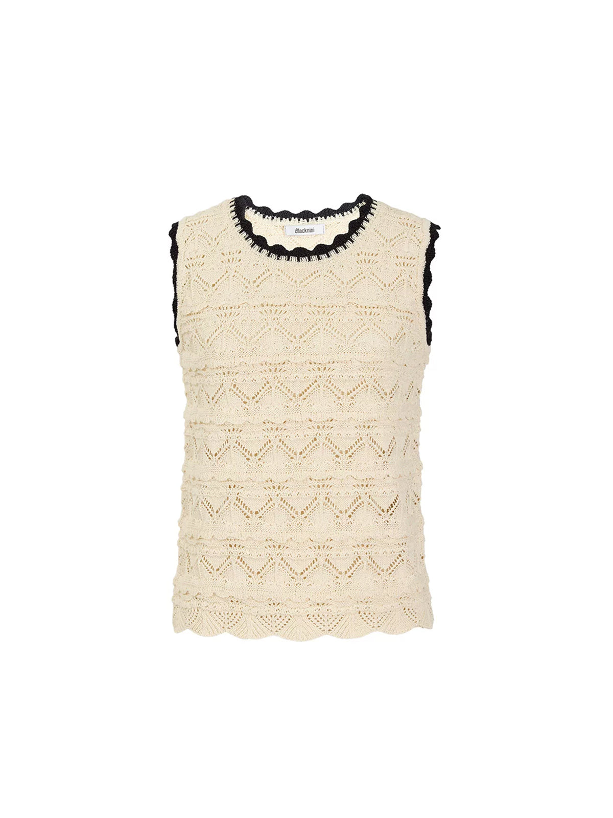 - Delicate hand-crocheted contrasting neckline and armhole trim