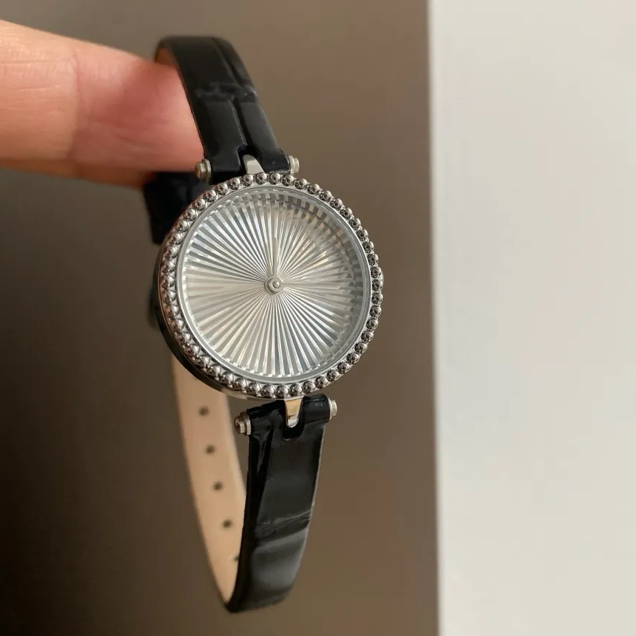 Vintage-Inspired French Chic: Black Leather & Silver Dial Quartz Watch