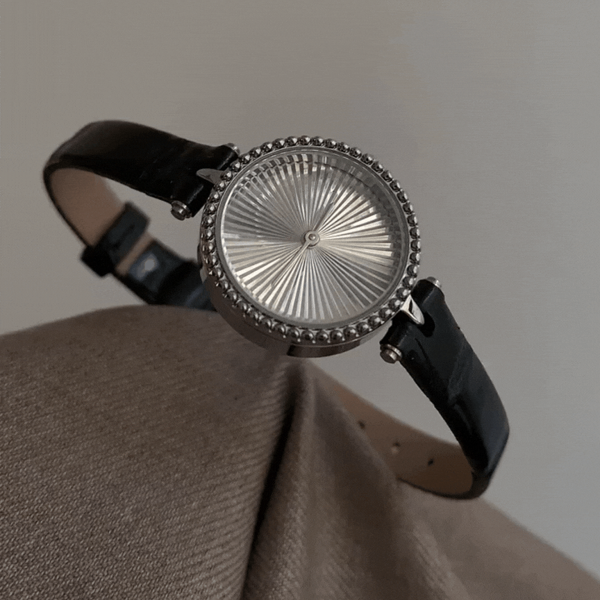 This sophisticated timepiece blends vintage charm with French elegance. The black leather strap contrasts beautifully with the silver dial, while the subtle design evokes a sense of refined luxury. A perfect accessory for both casual and formal wear.
