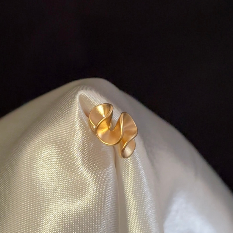 Elegant golden crinkle cream flower earrings showcase exquisite irregular folding design with delicate floral motifs. Crafted from hypoallergenic gold-plated surgical steel, they maintain luxurious appearance with all-day comfort. The cream floral elements harmonize with warm gold tone, blending vintage charm and contemporary style. Perfect for both casual and formal occasions, these versatile earrings add refined elegance to any outfit, transitioning seamlessly from office to special events. Each piece features unique textured artistry, embodying understated luxury and timeless appeal.