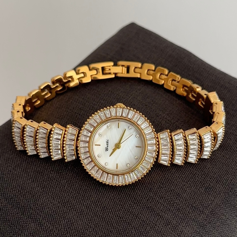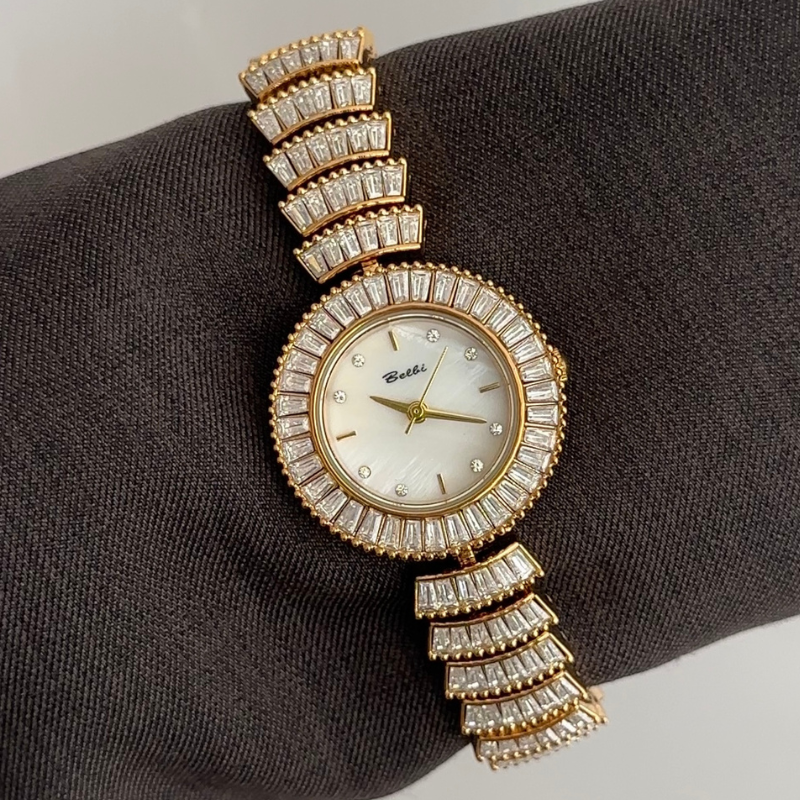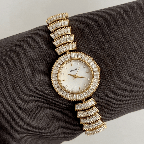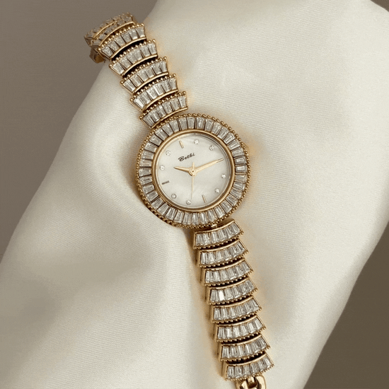 Feminine Glamour: White Round Dial with Fully Diamond-Set Gold Bracelet