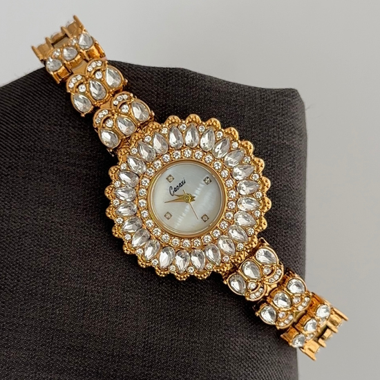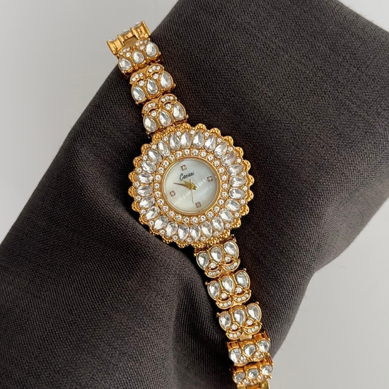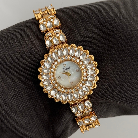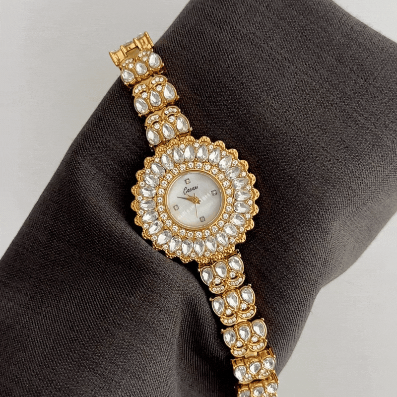 Floral Opulence: White Round Dial with Floral Diamond Bezel & Diamond-Studded Bracelet