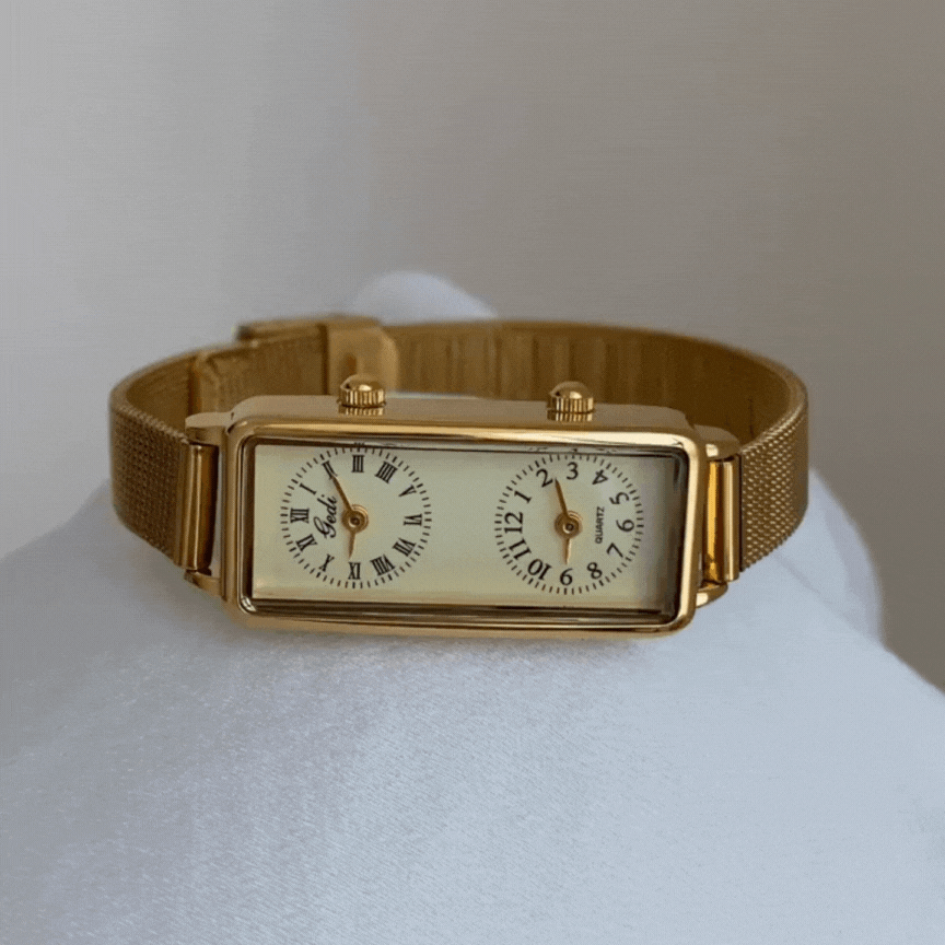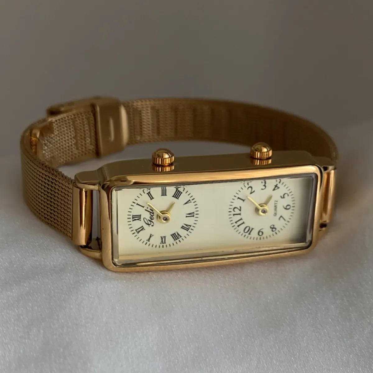 Gold Mesh Strap Quartz Watch for Women - Dual Dial Design With Gold Face