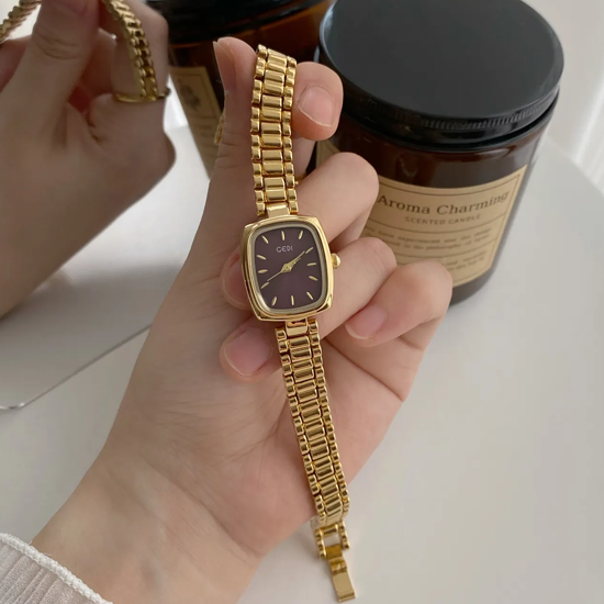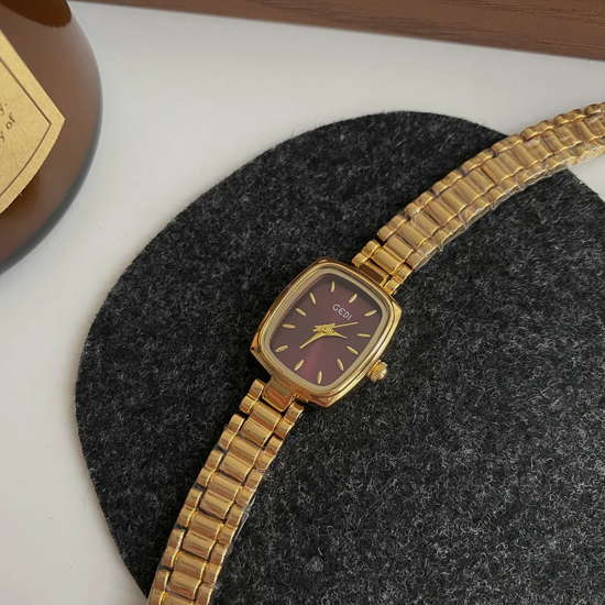 Vi presenterar Golden Charm Timepiece, en perfekt blandning av elegans och djärvhet. Med ett strålande guldfärgat kedjearmband, en slående röd rektangulär urtavla och en minimalistisk design utstrålar denna klocka en sofistikerad men ändå livfull charm, vilket gör den till ett perfekt tillbehör för alla tillfällen.
