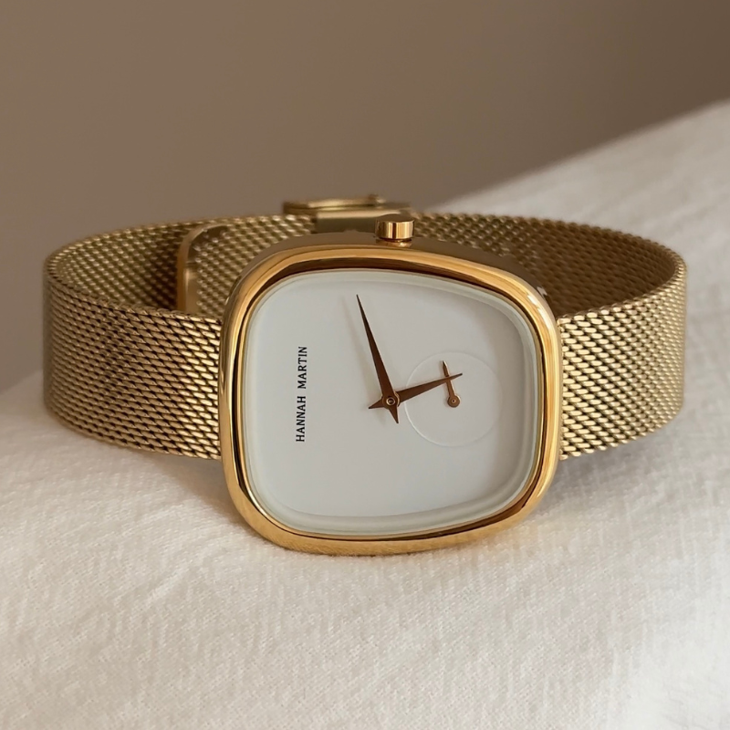 Discover the Lume Heritage collection, where timeless vintage aesthetics meet contemporary craftsmanship. This exquisite quartz watch showcases a sophisticated white dial encased in a gleaming gold-tone alloy frame, complemented by a matching bracelet that drapes elegantly around the wrist. The minimalist dial features slender baton markers and dauphine hands, paying homage to mid-century design while ensuring perfect readability.