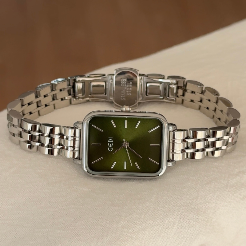 Minimalist Elegant Green Dial Silver Case Alloy Strap Quartz Watch