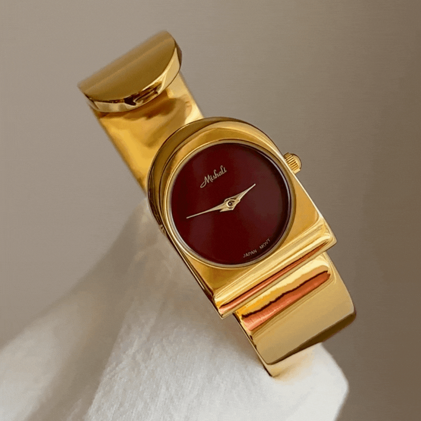 Elevate your style with this French-inspired gold bangle watch, featuring a bold red round dial and chic wide bracelet. Blending reliable quartz movement with jewelry-like design, its sophisticated gold and red contrast transitions effortlessly from day to evening. A perfect accessory for refined fashion lovers seeking timeless elegance.