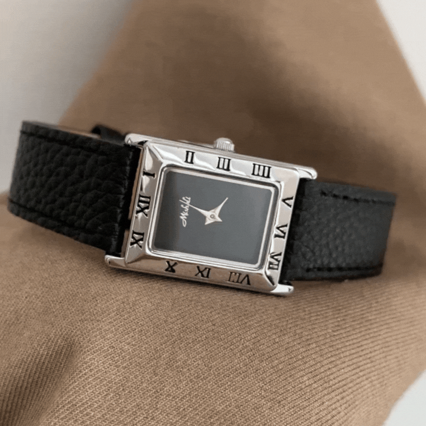 Vi presenterar klockan med silverfärgad och svart romersk urtavla, en fantastisk blandning av elegans och modern stil. Med sitt eleganta svarta läderarmband, djärva romerska siffror och en raffinerad fyrkantig boett erbjuder denna klocka en perfekt blandning av sofistikering och tidlös charm. Den minimalistiska urtavlan, i kombination med precisionskvartsurverk, säkerställer både stil och funktionalitet. Perfekt för alla tillfällen, denna klocka lyfter enkelt din look med sin diskreta lyx och mångsidiga design.